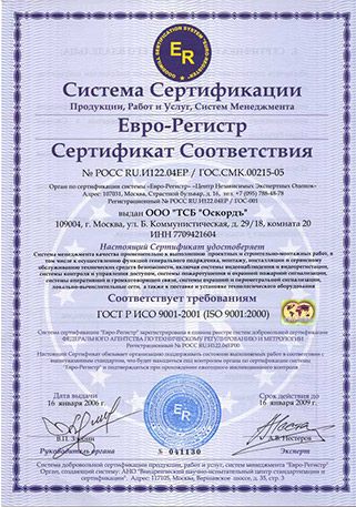 Сертификат ТСБ «Оскордъ» (Технические системы безопасности)
